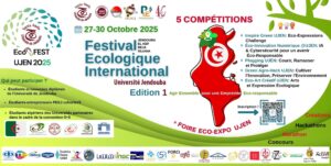 مهرجان Eco-FEST UJEN 2025 يفتح أبوابه للمشاركة!  جامعة جندوبة تدعوكم للمشاركة في الدورة الأولى للمهرجان الدولي للأثر البيئي، لفائدة: طلبة جامعة جندوبة و خريجيها دفعات 2024 و2025 الطلبة المبادرين Cohorte #3 بقطب الطالب المبادر PEEJ (بما فيهم طلبة ISET جندوبة وISET باجة) الطلبة من الجامعات الجزائرية الخمس الحدودية (ضمن إتفاقية 5+5) فعاليات المهرجان المميزة: تعبير إيكولوجي Inspire Green UJEN: Eco-Expressions …