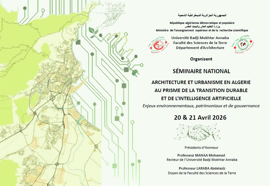 SÉMINAIRE NATIONAL ARCHITECTURE ET URBANISME EN ALGERIE AU PRISME DE LA TRANSITION DURABLE ET DE L’INTELLIGENCE ARTIFICIELLE